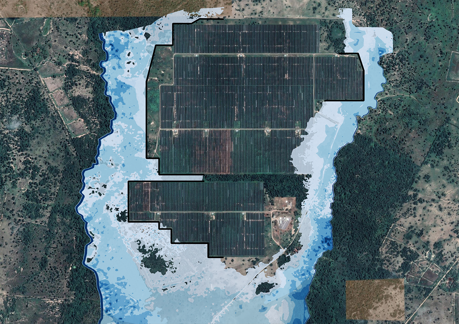 In 2020, we conducted two-dimensional hydraulic modeling of extreme events in surface watercourses adjacent to development areas for the Enel Green Power photovoltaic project. This served as a tool to determine flood-prone areas during peak flow events and to define nature-based alternatives for each project, aimed at controlling and mitigating the impacts generated by overflowing flows during extreme hydrological conditions.